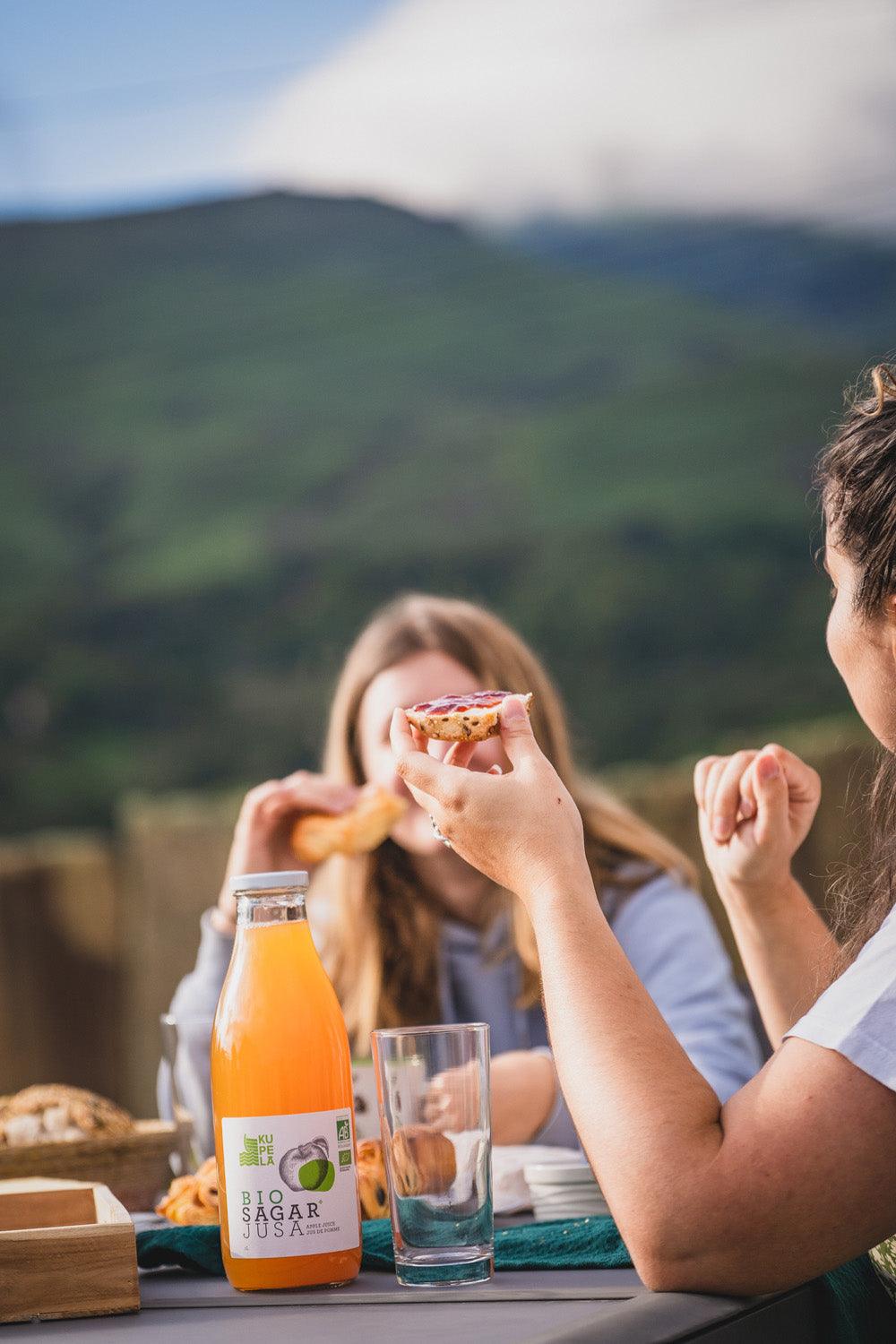 Un délicieux jus de pomme, pressé artisanalement à Astigarraga à partir de pommes biologiques locales.